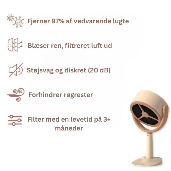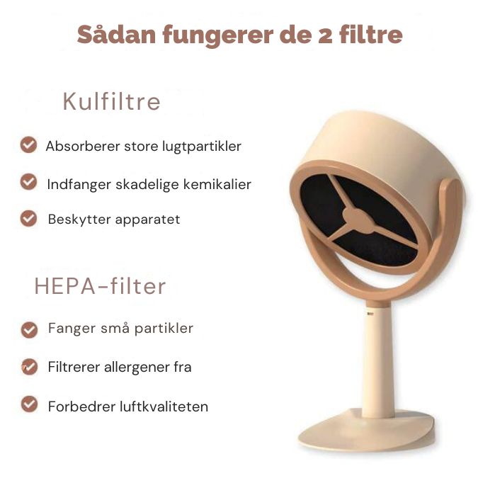- Udskiftning af filtre: Udskift HEPA- og kulfiltre hver 2.-3. måned for optimal ydeevne. To gratis filtre er inkluderet i dit køb.