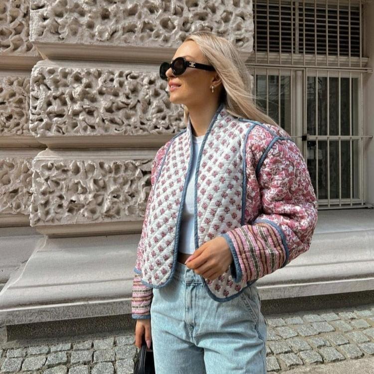 Den langærmede Lisa-jakke med tryk på begge sider giver et luksuriøst vintage-look til din garderobe, hvilket gør den til et must-have for den modebevidste kvinde. Fremstillet af et fint og blødt materiale, omfavner denne jakke dig med uovertruffen komfort og giver dig mulighed for at nyde dens bløde berøring mod huden. Den komfortable pasform giver dig fri bevægelse, hvilket gør den ideel til daglig brug.