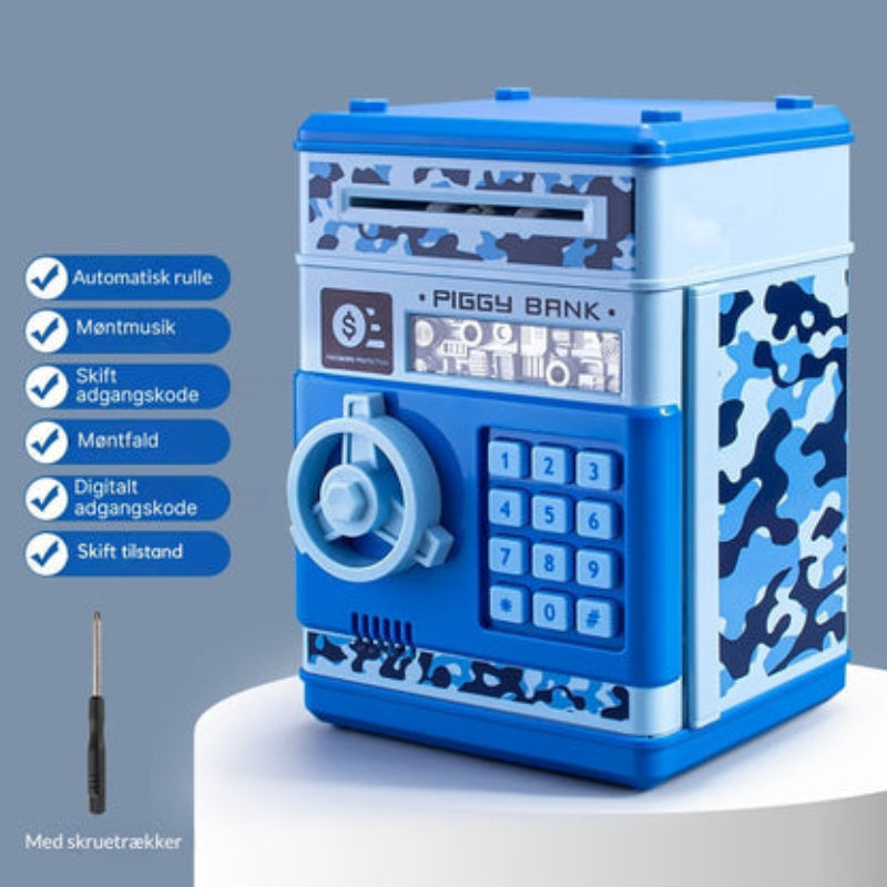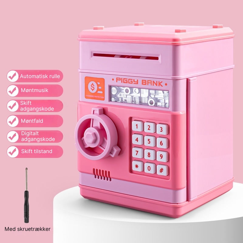 MoneySafe tilbyder en sjov og funktionel måde at spare på, udstyret med indbygget elektronisk sikkerhed og et legende hæveautomatlignende design. Den holdbare konstruktion tåler daglig brug, mens dens stærke struktur sikrer, at dine opsparinger altid er beskyttet. Det intuitive låsesystem bruger en firecifret adgangskode, hvilket tilføjer et interaktivt sikkerhedslag. I tilfælde af forkert indtastning forstærker en advarselslyd vigtigheden af adgangskodens nøjagtighed. Både børn og forældre vil sætte pris på kombinationen af beskyttelse og legende læring.