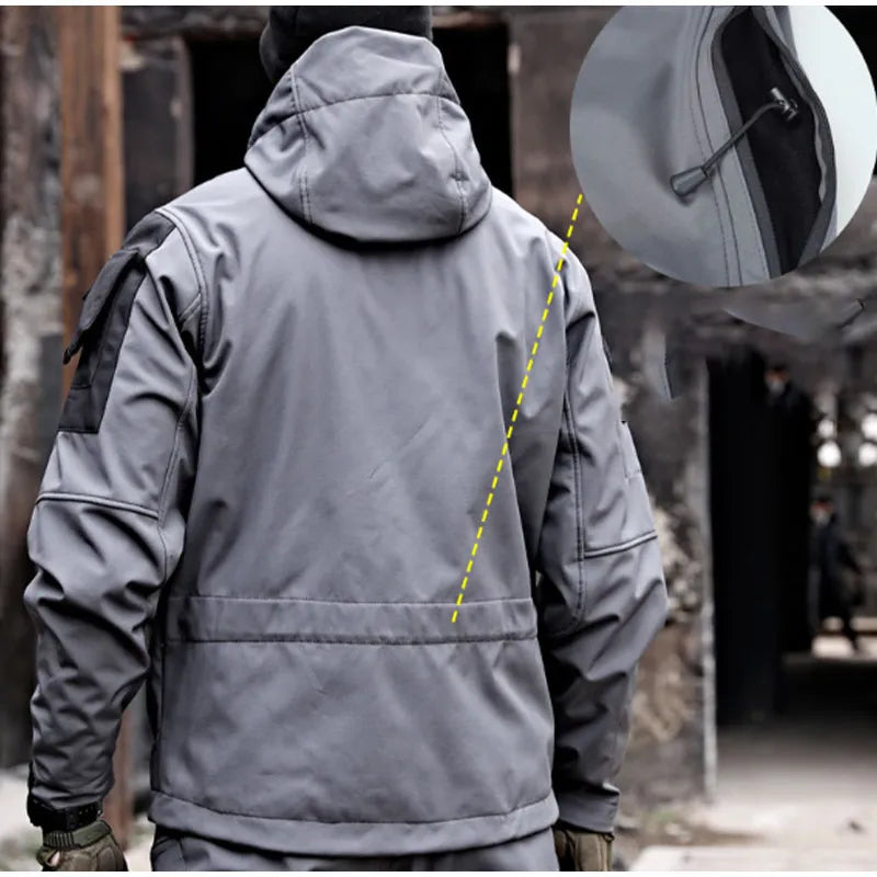 Træd ud i vildmarken eller mød stormen med vores taktiske outdoor jakke. Denne jakke i militær kvalitet er lavet af hajskind og giver uovertruffen vand- og vindtæt beskyttelse. Uanset om du er i kamp eller på vandretur, er dens multifunktionalitet din trofaste allierede.