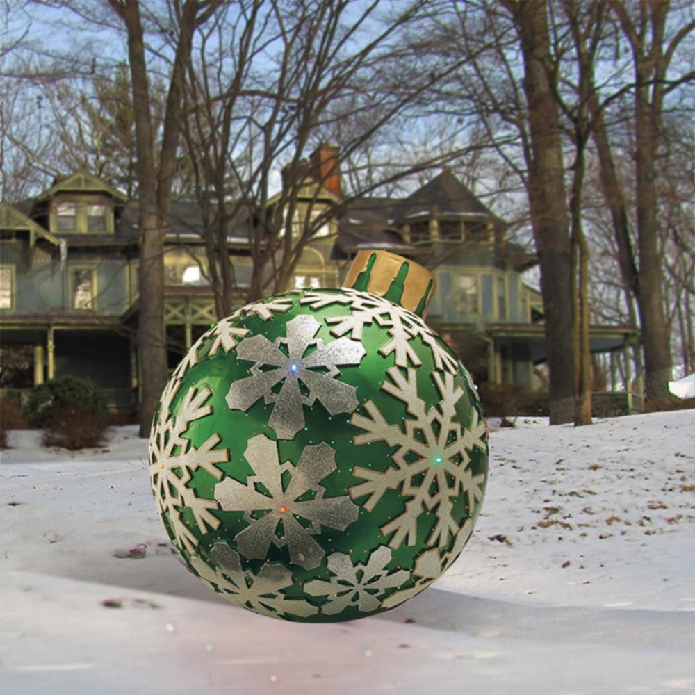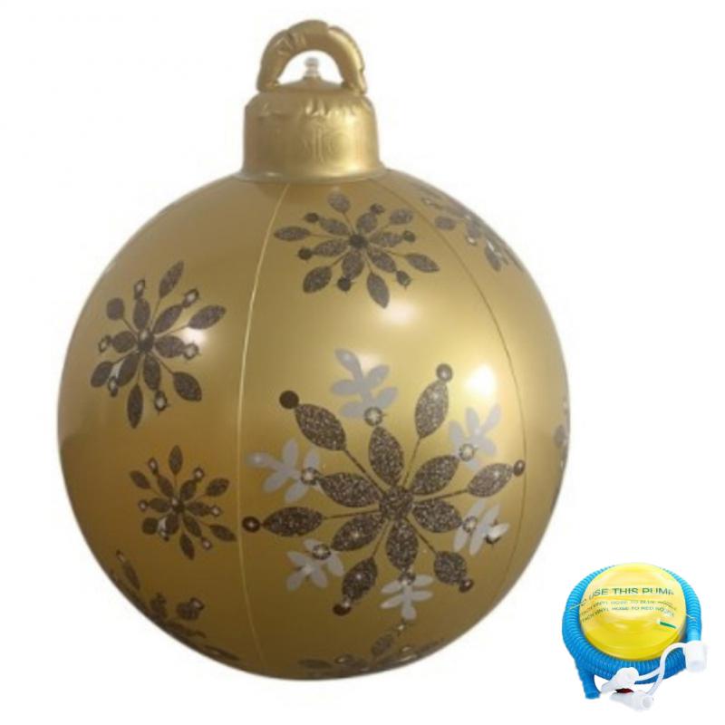 ✔️ Iøjnefaldende design: De dekorative elementer på den oppustelige, dekorerede julekugle skaber et visuelt imponerende og fortryllende display.