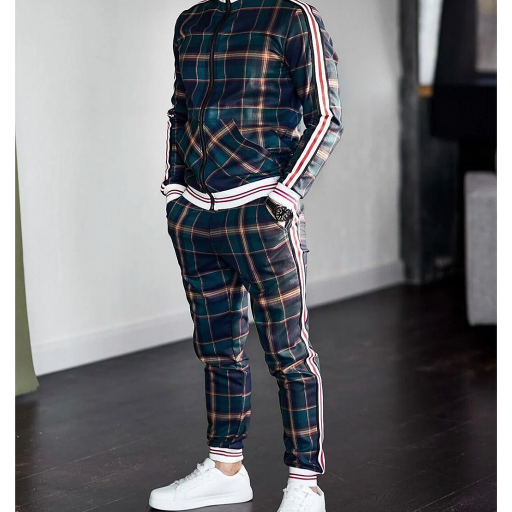 Denne ternede tracksuit med sideliljer kombinerer moderne mønstre med daglig komfort. Det stilfulde design gør den til et fremragende valg for streetwear-entusiaster, afslappede udflugter eller rolige stunder. Pasformen og snittet er designet til, at du ser skarp ud, samtidig med at du føler dig komfortabel.