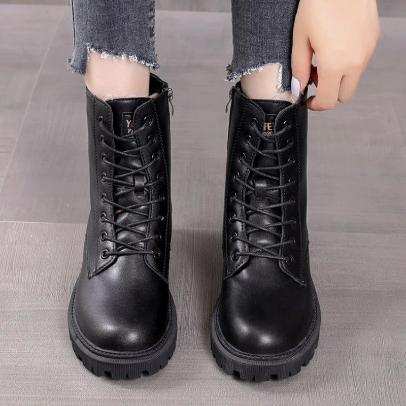 ✔️Vandtæt læder: Støvlerne er lavet af vandtæt læder, der beskytter mod regn, sne og sjap og giver tørre og behagelige fødder.