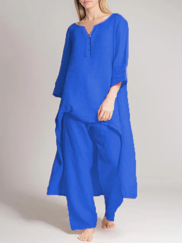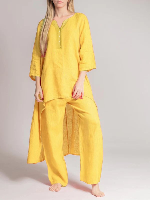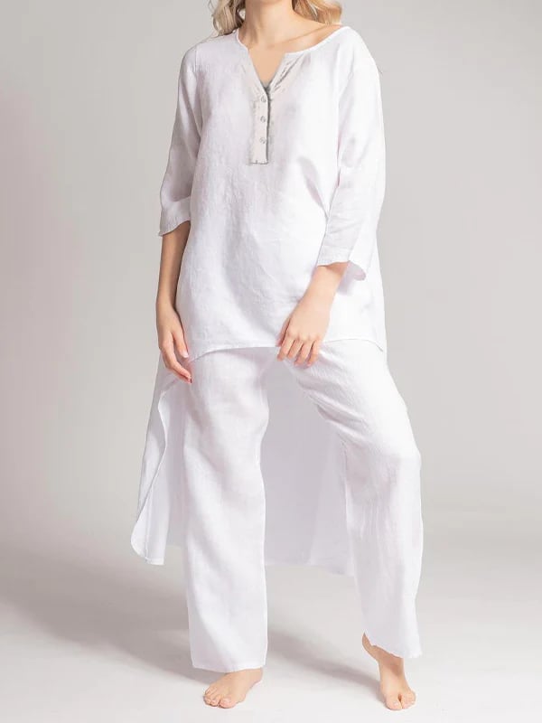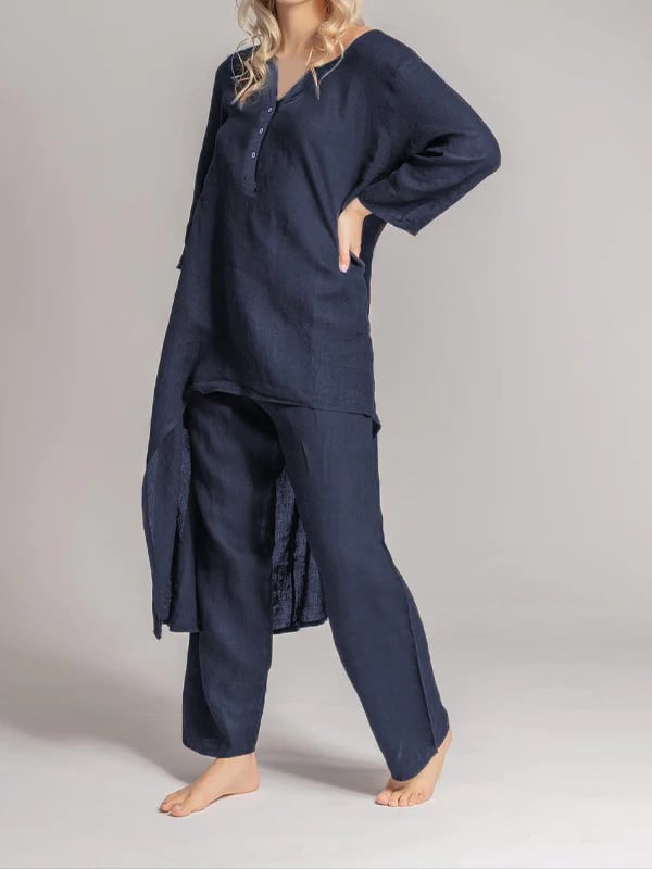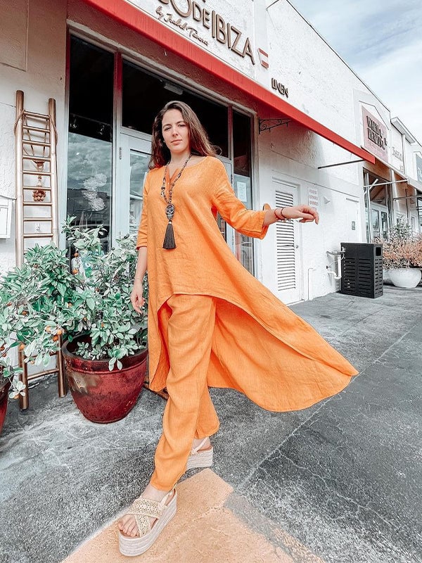 Omfavn raffinement og optimisme med RadiantAura-ensemblet i hør, der er omhyggeligt udformet, så det ubesværet udstråler elegance og positivitet. Dette udsøgte sæt er skræddersyet til de livlige sjæle, der udstråler positivitet, uanset hvor de færdes. Det er fremstillet af udsøgt hørstof og tilfører et strejf af overdådighed i din daglige påklædning.