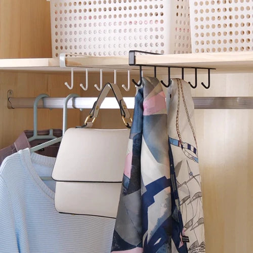 Gør din daglige rutine nemmere, og hold alt organiseret med Under Cabinet HangSmart. Denne innovative løsning giver dig mulighed for nemt at opbevare kopper, køkkenredskaber, håndklæder, handsker og meget mere under skabe, hylder eller andre tilgængelige områder. Installationen er let som en leg; du skal blot skubbe stativet over et skab eller en hylde for at få en sømfri, problemfri installation.