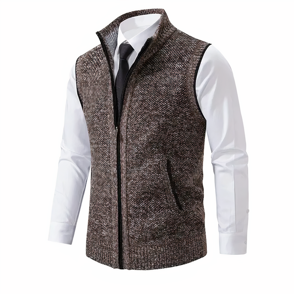 Jason kombinerer praktisk komfort og urban enkelhed i en elegant silhuet. Med sin høje krave og lynlås foran er denne vest designet til ubesværet lag-på-lag og heldagsbrug. Den passer godt til en bred vifte af outfits og tilbyder både alsidighed og struktur. Uanset om den bæres alene eller over en skjorte, forbedrer den dit look med en skarp og selvsikker kant.