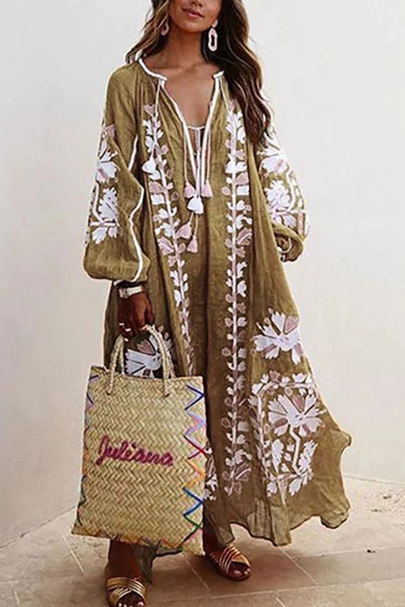Lana-kjolen indfanger essensen af ubesværet charme med sin flagrende silhuet og yndefulde fald. Dens dybe V-halsudskæring og lange ærmer skaber et afbalanceret, aflangt look, der er flatterende, samtidig med at det tilbyder frihed og lethed. Det boheme blomsterprint tilføjer et subtilt kunstnerisk præg, hvilket gør den ideel til øjeblikke, hvor du ønsker at føle dig både afslappet og strålende. Uanset om den bæres afslappet eller pænt, er Lana designet til at fremhæve din naturlige selvtillid.