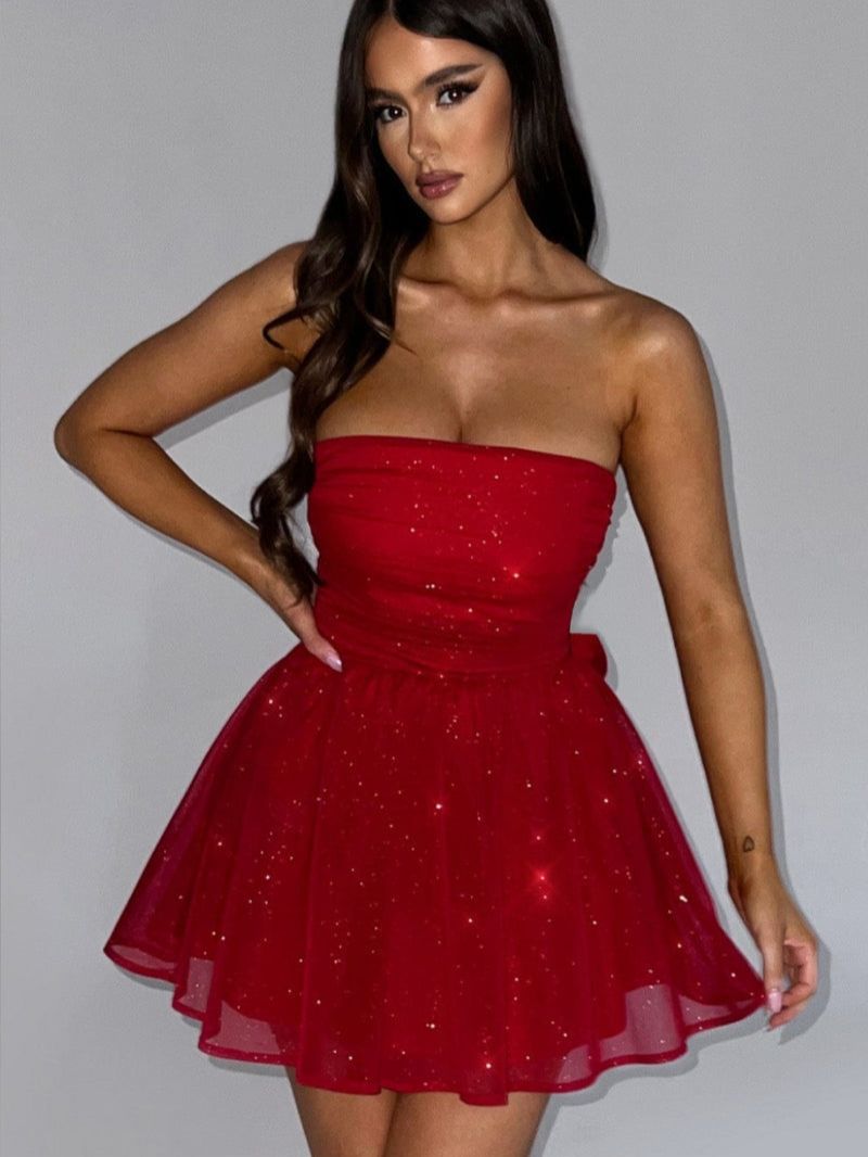 Den korte længde tilføjer et ungdommeligt præg og viser dine ben frem, samtidig med at den bevarer en eksklusiv charme. Dens skulpturelle pasform fremhæver dine naturlige kurver uden at begrænse bevægelsen, så du kan nyde aftenen med lethed. Kombineret med dine yndlingshæle og en elegant clutch bliver denne kjole et must-have til bryllupper, fester eller intime aftener ude. Det er den slags stykke tøj, der efterlader et varigt indtryk – glamourøst, ubesværet og altid det rigtige valg.